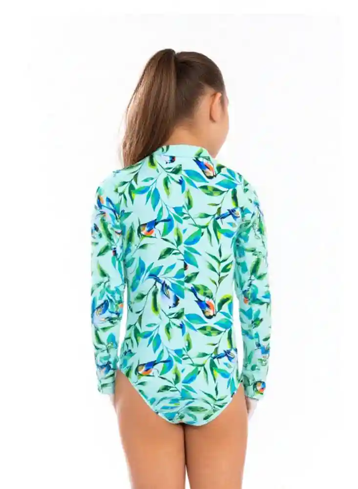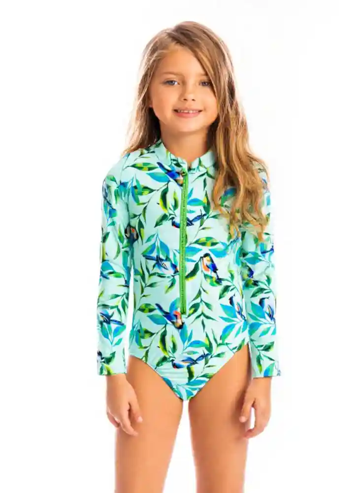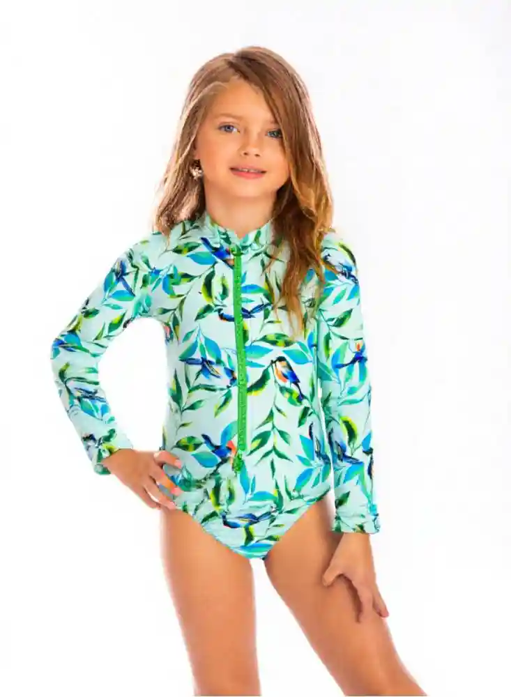 Vestido De Baño Niña Manga Larga Con Cremallera Pajaritos verde